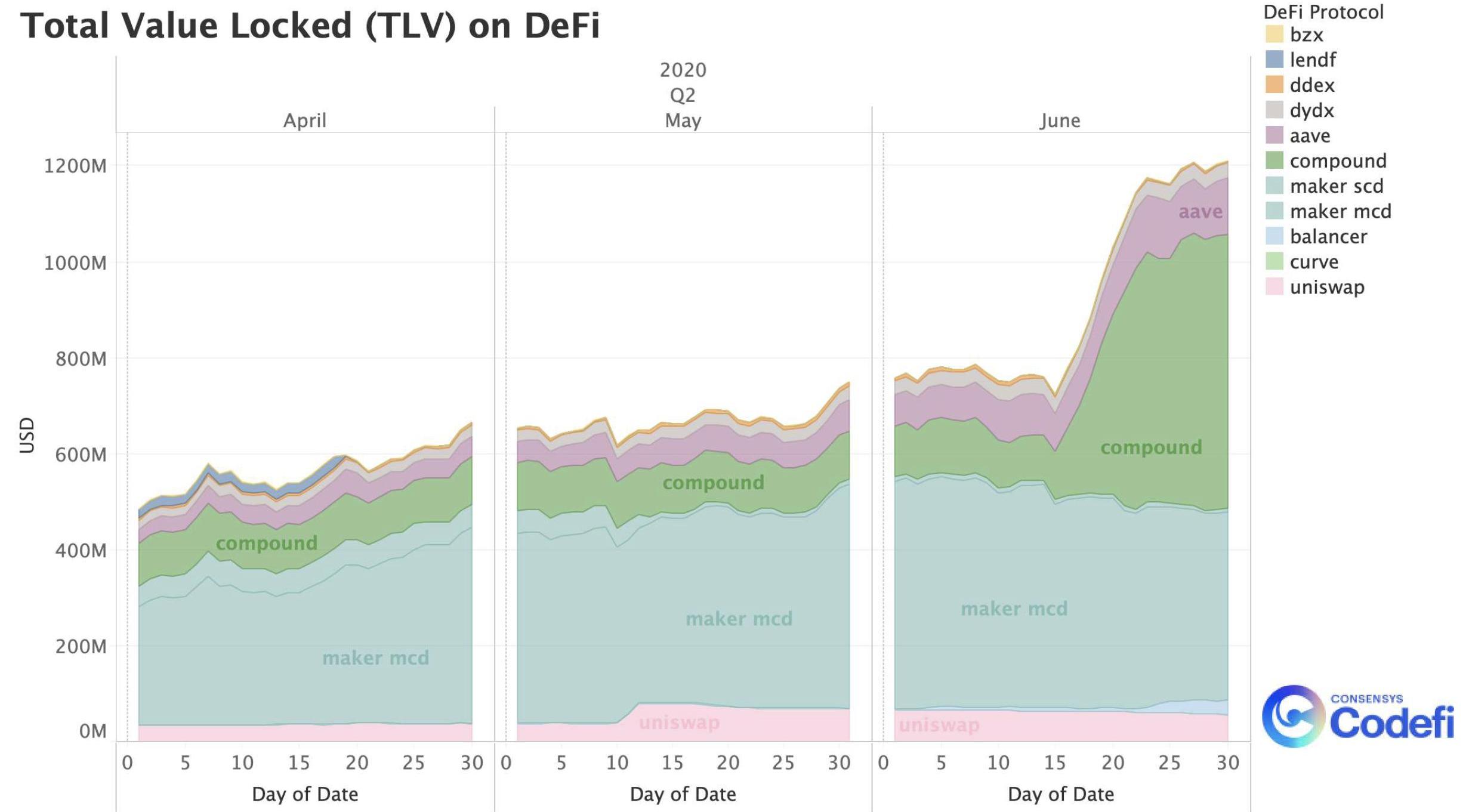 DeFi中的TVL在6月的最后两周攀升,该季度末价格为12亿美元,其中80.3%归因于Maker和Compound。