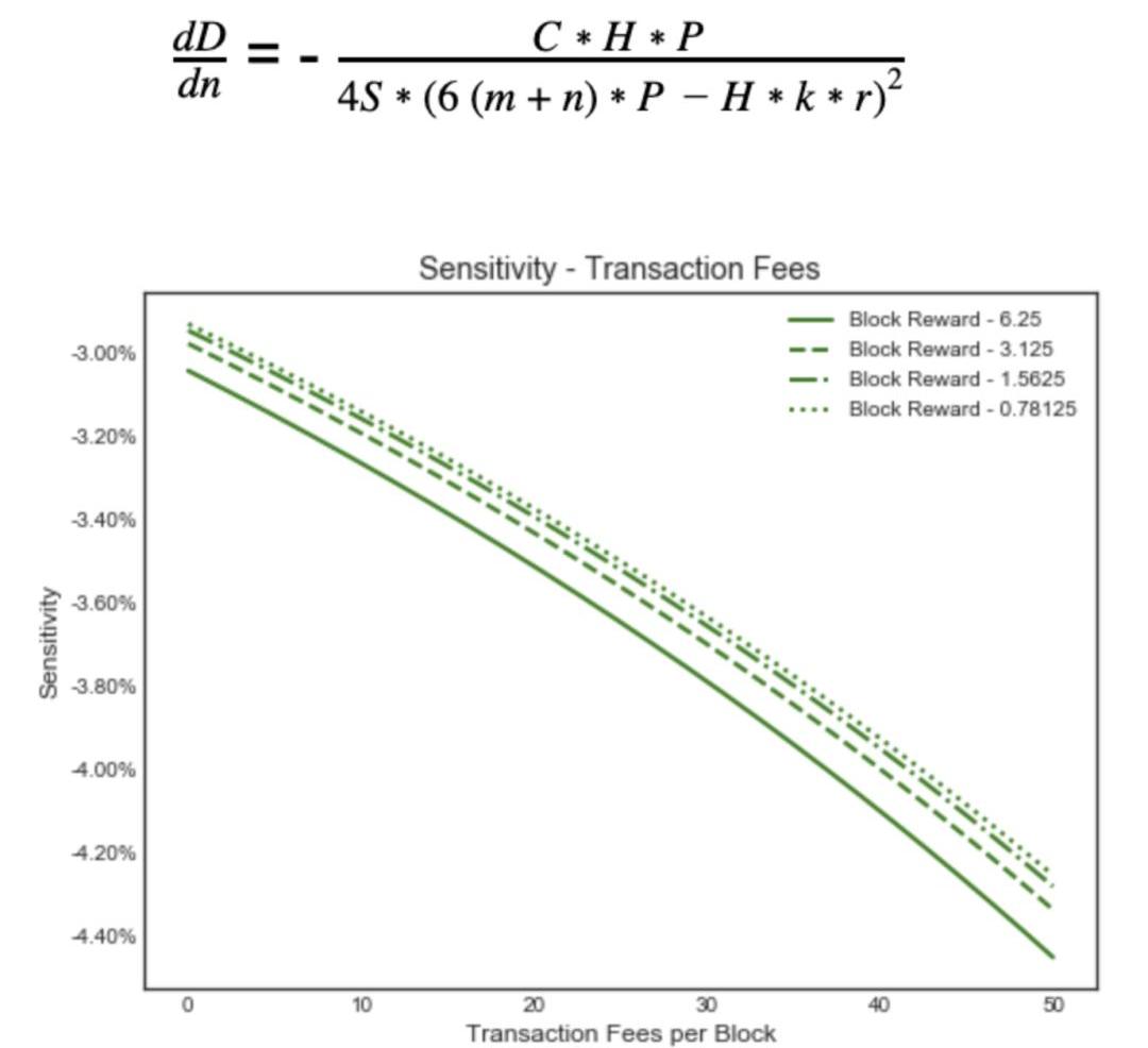 我们可以考察一下回本天数这一指标的敏感性,方法是看让它对每个变量的偏导数。这类似于期权对冲值,该指标衡量的是,当标的资产的价格发生变化时,期权的价值会如何变化。所得结果的绝对值越高,回本天数对价格变化的响应速度就越快。对价格变化的敏感性的公式如下: