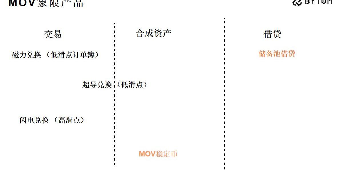 我们在做的磁力兑换和闪电兑换属于交易,超导兑换属于合成资产和交易。储备池借贷、稳定币是我们目前主要的发力方向。