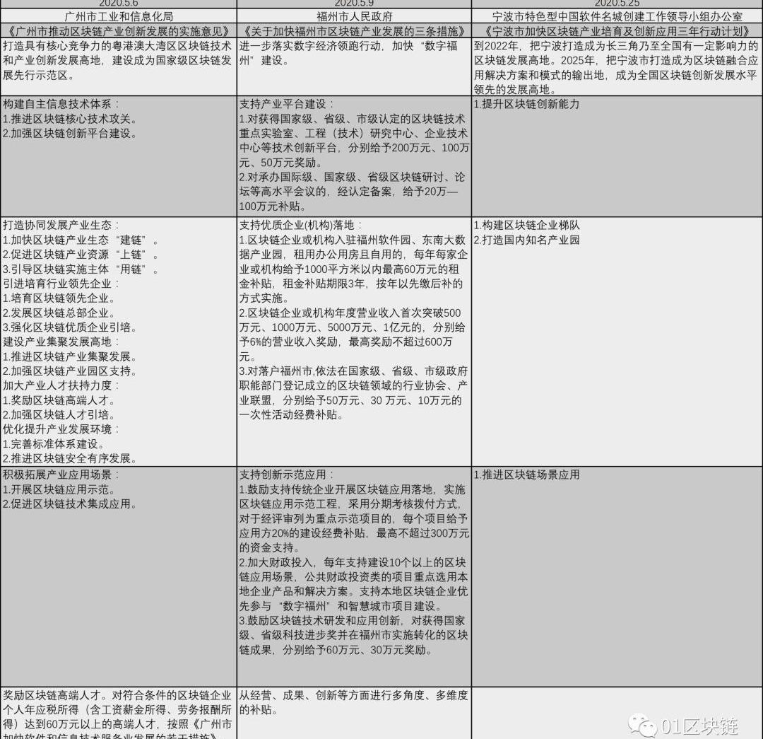 此次5月份各省市发布的区块链政策中,只有福州市发布了较为详细、全面的补贴措施,此前其他省市均已相继公布过相关措施。《关于加快福州市区块链产业发展的三条措施》表示将对区块链企业从经营、成果、创新等方面进行多角度、多维度的补贴。
