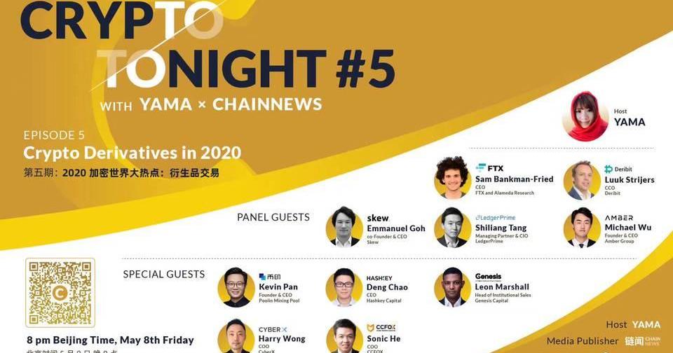 北京时间5月8日晚8点,CryptoTonight?第五期节目「2020加密世界大热点:衍生品交易」顺利开播,Yama邀请了10位加密货币衍生品与金融资深从业者共同探讨加密衍生品市场机遇。本期节目的核心看点有: