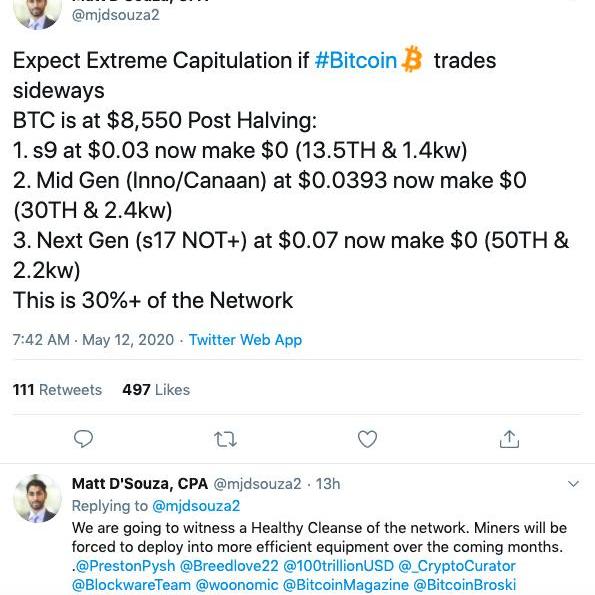 事实上,BlockwareSolutions首席执行官MattD'Souza?解释称,在最近的减半之后,将会带来“网络的健康净化”。由于蚂蚁矿机S9、芯动和嘉楠中上一代矿机将不再盈利,未来几个月,所有的矿池都将被迫部署更高效的矿机。
