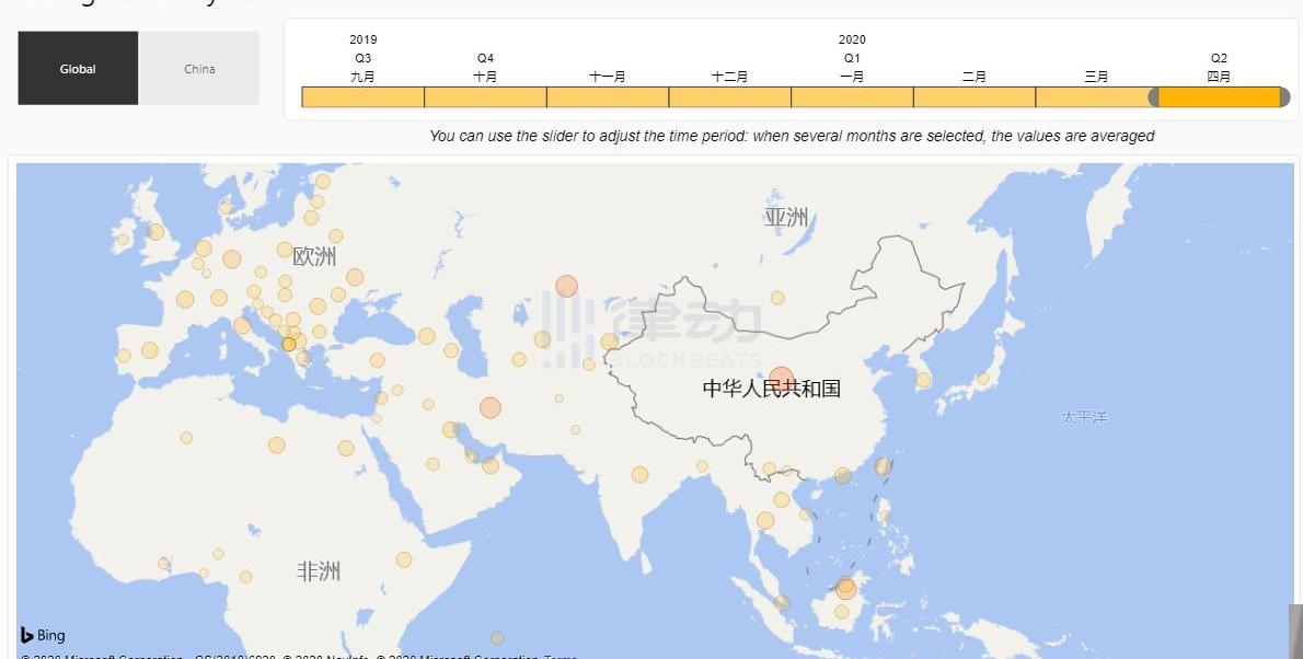 据律动了解,算力数据来自与三个矿池(BTC.com、Poolin和ViaBTC)相连的api,并且花了一年时间进行开发。不过这张图数据可能在北美和欧洲的算力份额统计上有较大的偏差。目前剑桥团队希望从更多的矿池中获得数据,以创建更全面的图景。