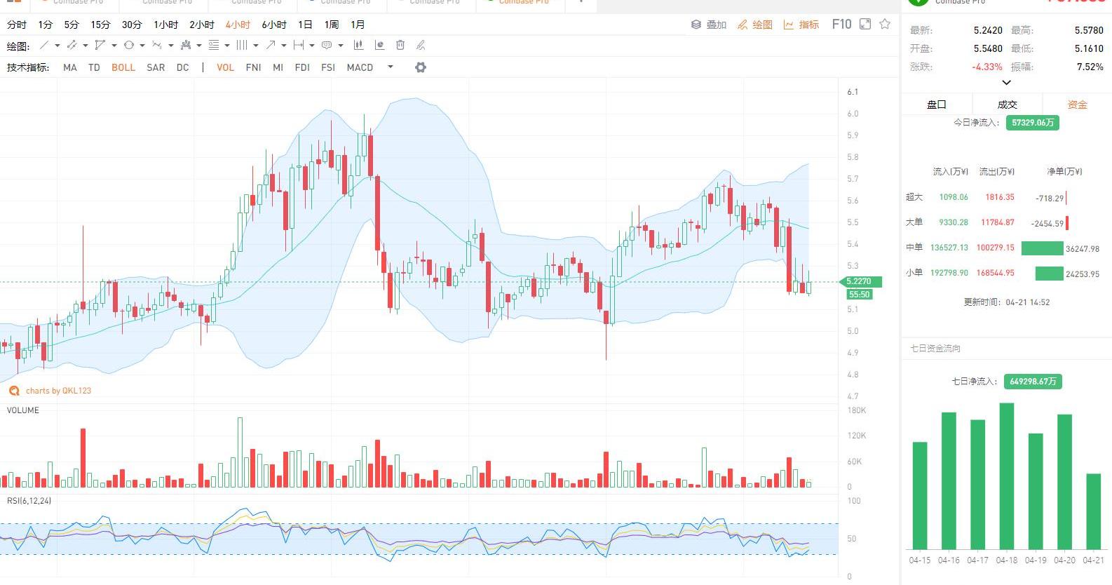 ETC昨晚联动下行后,最低触及5.1美元后反弹并不强烈,大单小单资金流存在明显分歧,短时观望情绪较浓。