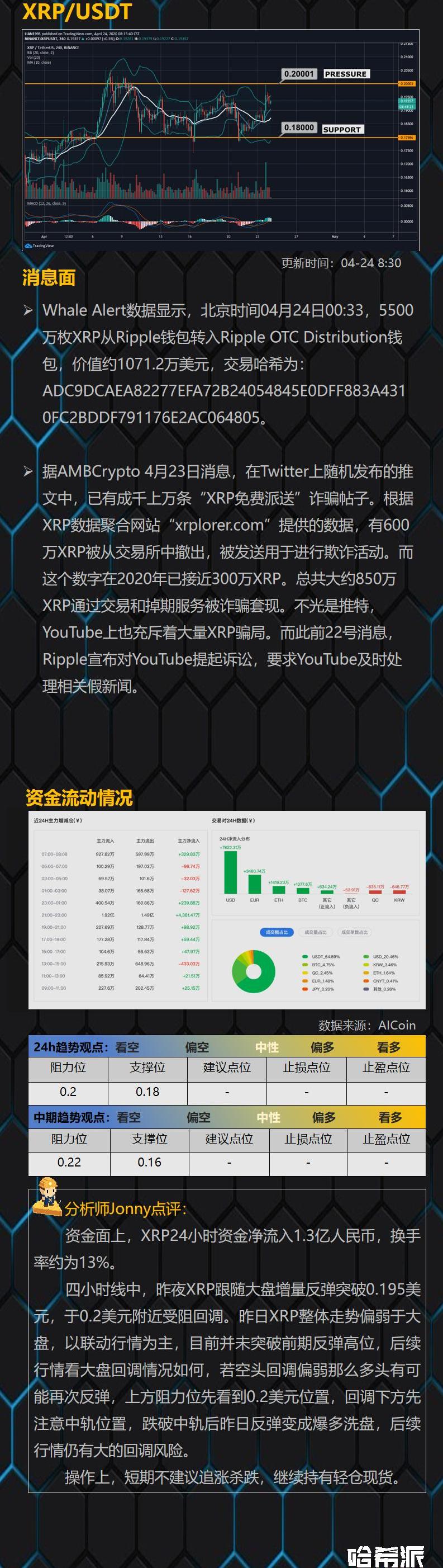 行情 | OKEx以太坊合约空头平均持仓比例再次反超多头:截至今日8:00,OKEx比特币合约精英账户中,多头平均持仓比例为22.53%,空头平均持仓比例为18.12%,多头持仓比例仍超过空头,差距变化不大。以太坊合约精英账户中,多头平均持仓比例为16.86%,空头平均持仓比例为19.10%,空头再次反超多头。当前BTC合约持仓总量约为5.59万个BTC,持仓量较昨日有所增加;ETH合约持仓总量约为48.73万个ETH,持仓量较昨日有所增加。[2019/7/31]