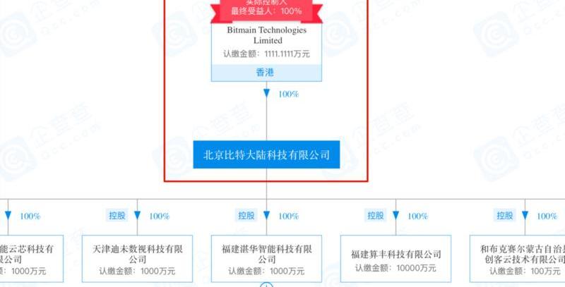 企查查信息显示,北京比特是比特大陆香港主体BitmainTechnologiesLimited的全资控股公司。也就是说,北京比特的唯一股东是香港比特。