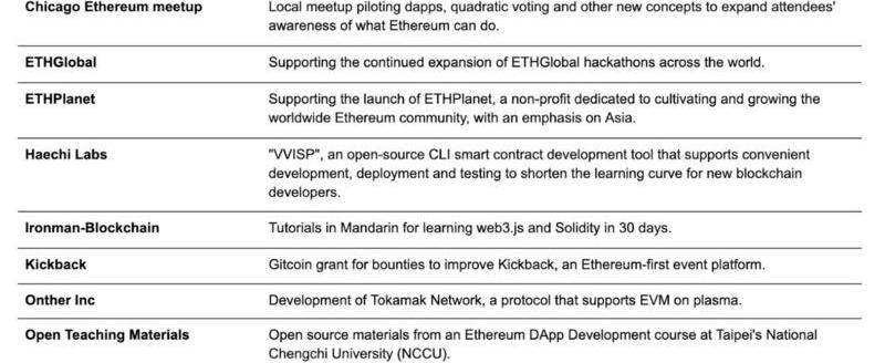 来源:https://blog.ethereum.org/2020/04/01/ecosystem-support-program-allocation-update/