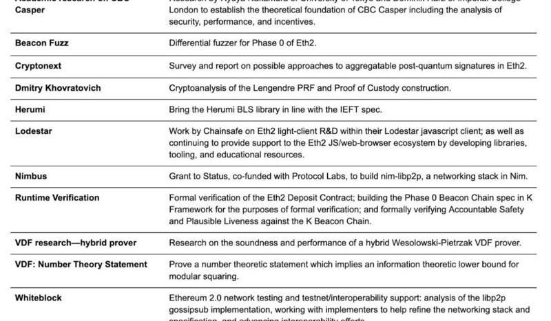 除了上面列出的资助之外,ETH2.0的工作还得到了常规性资助和其他渠道的支持。