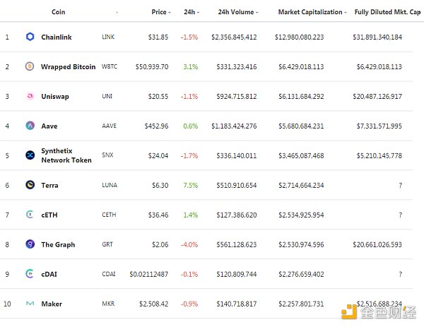 DeFi项目锁定资产前十排名及锁仓量,数据来源:Debank