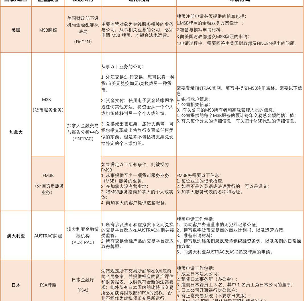 日本:日本是第一个将数字货币交易纳入法律法规体系的国家。2017年日本开始实施《资金结算法案》,承认数字货币作为支付手段的合法性。之后,日本金融厅颁布《支付服务法案》,对数字货币交易所实施全方位监管。所有在日本境内运营的交易所必须获得财政部与FSA的牌照授权。