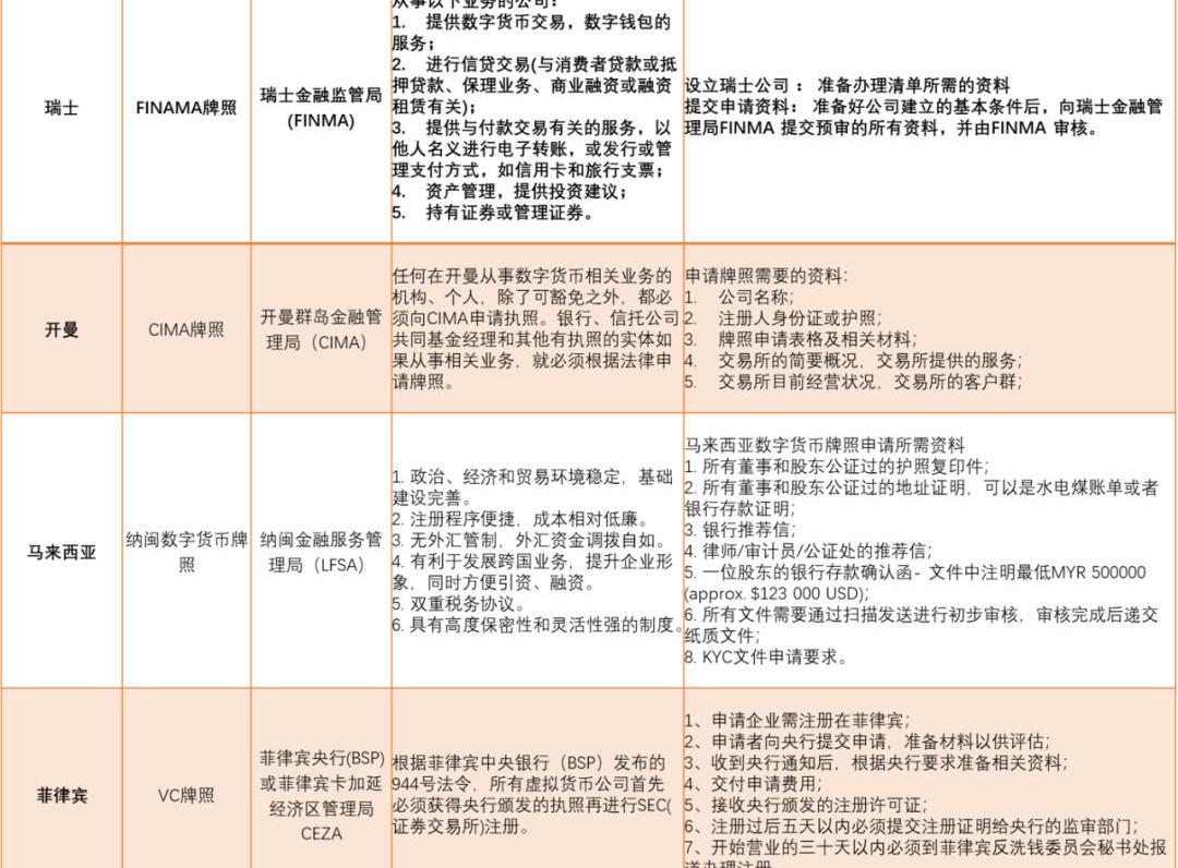 据零壹智库不完全统计,目前全球主要的与数字货币相关的监管牌照的具体情况如下: