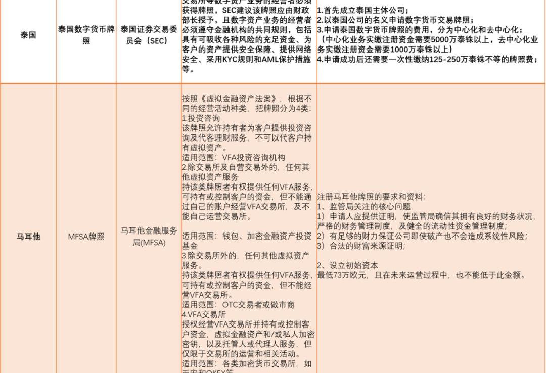 泰国:为了更好的监管数字货币行业,2018年6月,泰国颁布了《数字资产法》,宣布为合规加密货币交易所颁发牌照,开始实行牌照化管理。