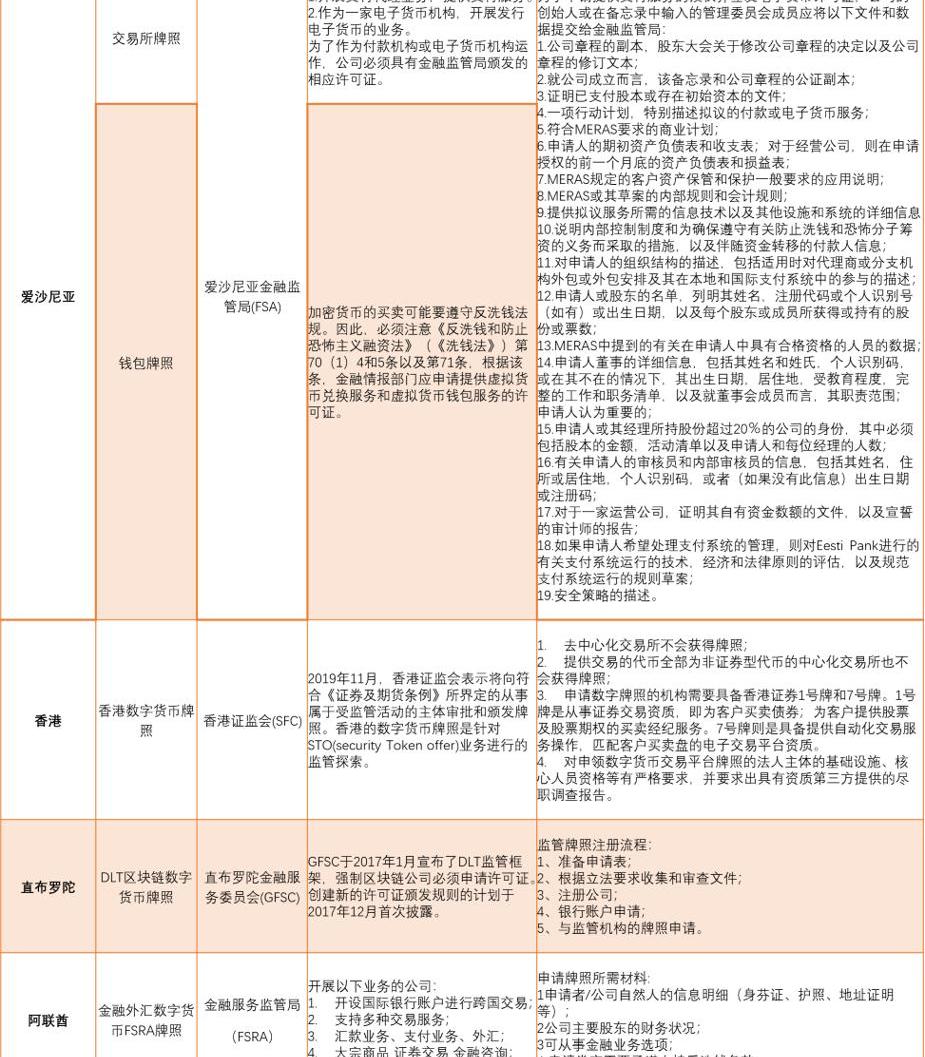 部分国家和地区数字货币监管牌照信息,来源:01区块链