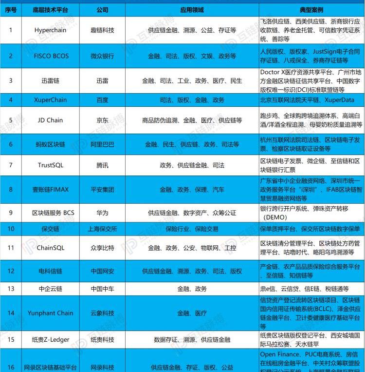 除大型科技企业外,同样有少数原生区块链公司的底层平台正尝试在多个领域实现落地应用。