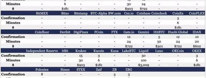 ?充值所需确认数最低的是Bitfinex,为5个确认