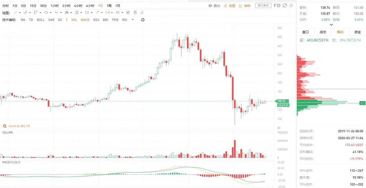 当下,ETH2.0升级已经延期,由计划的今年第一季度延迟到今年7月份,主要原因是需要对已发现问题进行改进。盘面上,已经显现出ETH的相对弱势:相对于目前BTC偏多的走势,ETH整体呈收敛走势,近期弱势联动BTC为主。
