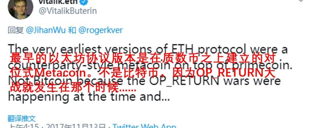 而除了提出PoS机制之外,SunnyKing还在2012到2013年间先后发布了点点币Peercoin和质数币Primecoin两个加密货币项目;其中质数币协议是以太坊的早期建设基础。2017年11月13日当天,吴忌寒在推特上询问Vitalik,“以太坊本来准备在比特币上实现,后来却被傲慢的人赶了出去”的传言是否实属。后者在澄清的时候表示,最早的以太坊协议本来是在质数币上建立的。不过或许是受到比特币以及其山寨币出现“警报系统事件”的影响,Vitalik最后决定自己重新编写以太坊系统,从而避免安全问题的出现。