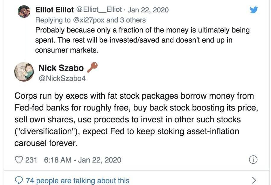 大多数S&P500公司将其获得的补助现金流的50%以上用于股票回购,而不是投资于未来,也不是用于度过我们现在所处的危机。