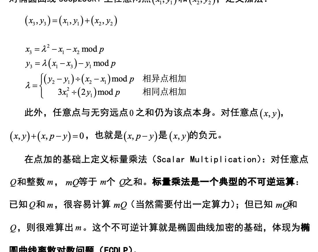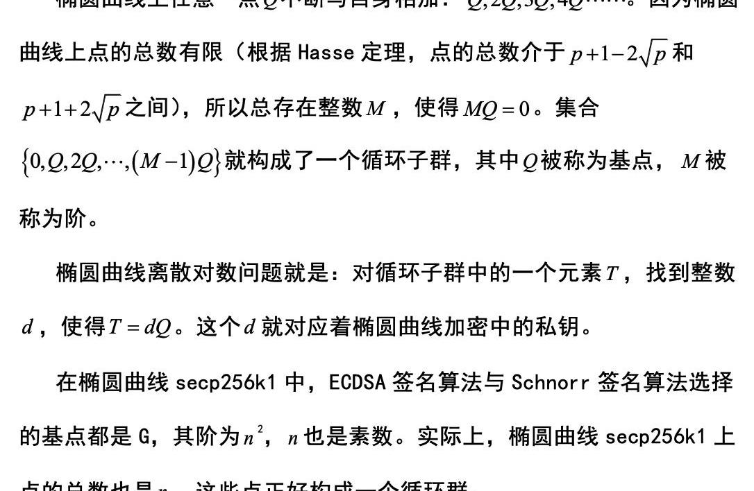 比特币目前使用的ECDSA签名算法与建议的Schnorr签名算法,都属于椭圆曲线数字签名算法,它们使用的椭圆曲线都是secp256k1。这一部分先介绍椭圆曲线secp256k1,再介绍ECDSA签名算法。