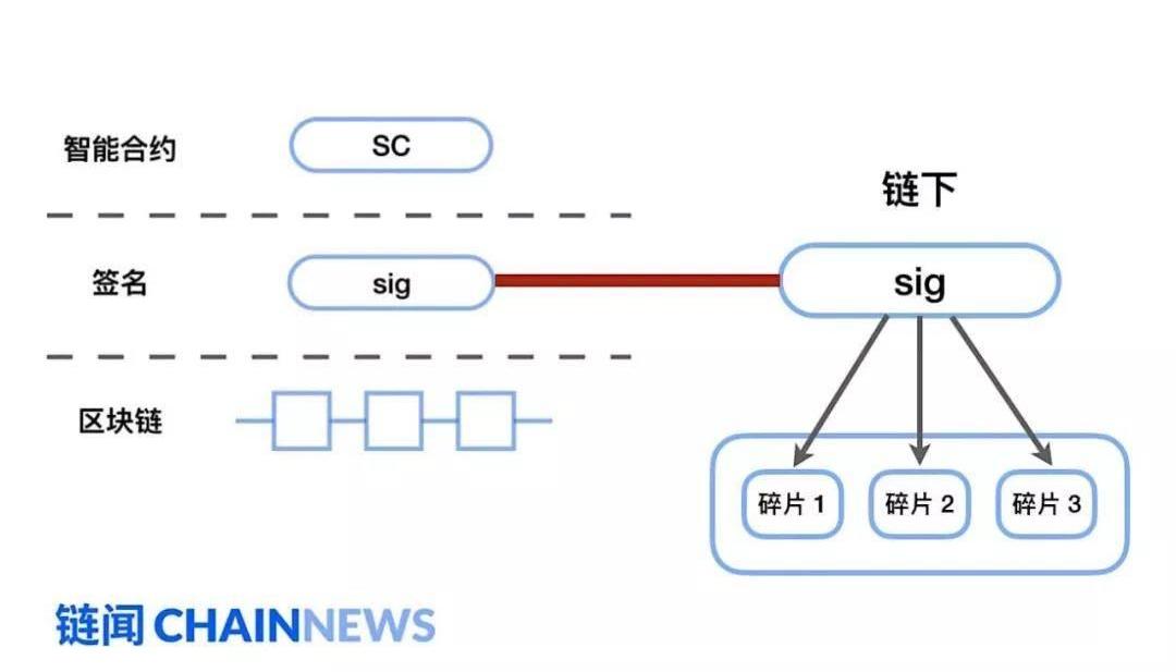 它的思路是说一个签名一定是有一个私钥的,它把这个私钥以某种方式分成很多「碎片」,这些碎片可以被很多人同时拿着,然后通过一套MPC协议,保证这些碎片不需要被拼起来就可以直接产生一个合法的签名。「不需要被拼起来」代表着真正的私钥始终没有、而且也不需要出现。
