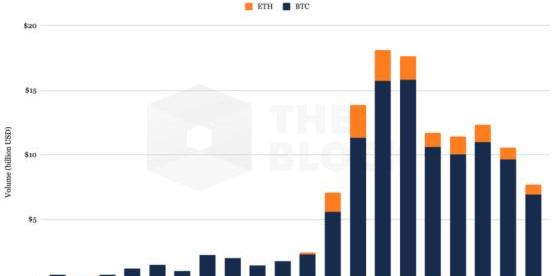 同样的趋势也可以在Deribit平台上观察到。6月份,BTC和ETH的总销售额达到了181亿美元。