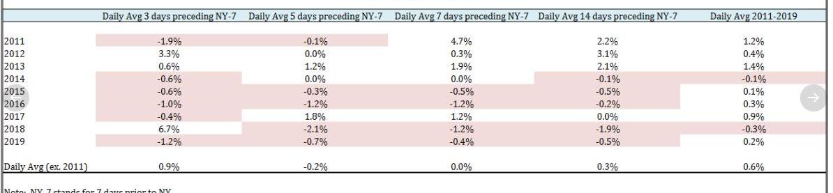 例如,2020年,新年之前7天的5天日均收益率代表1月12日至1月17日之间的日均收益率。这是2021年需要注意的事情。