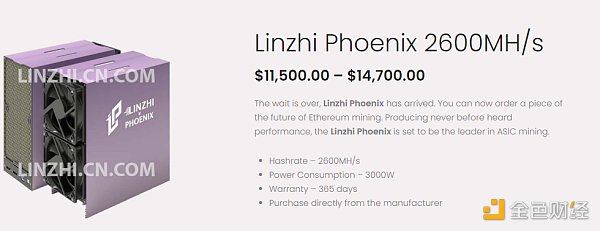 据Linzi官网,Linzi Phoenix矿机售价为14700-11500美元。按时间顺序递减,比如2月份发货价格则为14700美元。不过2月份矿机已经售完。