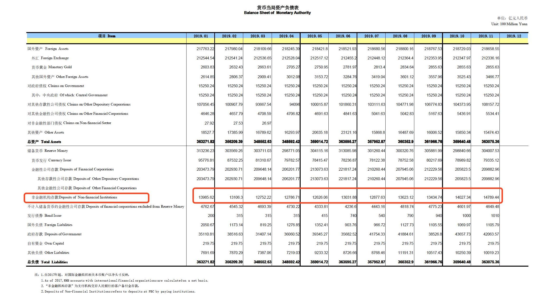 图5是央行资产负债表,其中非金融机构存款,就是第三方支付机构交存央行的客户备付金存款,11月末的数据是14789.44亿元,占“货币发行”的18.64%。
