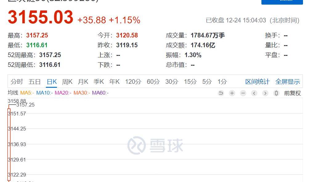 12月24日,深圳证券交易所和深圳证券信息有限公司发布深证区块链50指数,以反映深圳证券市场区块链产业相关公司的表现和丰富指数化投资工具。指数基点为1000点,24日开盘点位为3120.58,收盘点位3155.03,涨幅1.15%。
