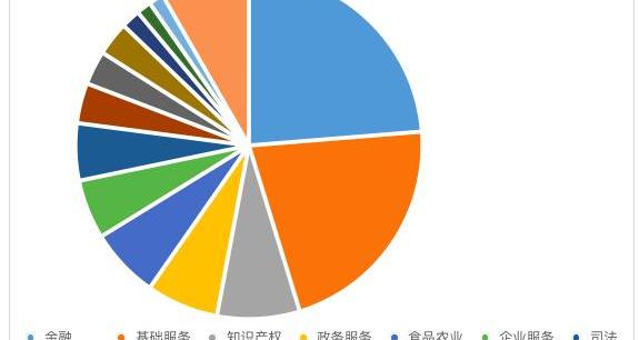 此外,知识产权、政务服务、食品溯源、司法等领域的区块链技术应用也加速落地,共有备案服务161个,约占总数的31.82%。除底层基础服务外,金融、知识产权、政务服务、食品农业领域的备案服务产品较多。