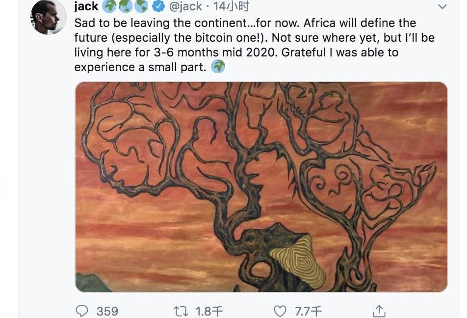 11月28日消息,推特公司和Square公司的首席执行官,当前比特币最具影响力的支持者之一,他在今日发推文称“非洲将决定未来,尤其是比特币的未来!”