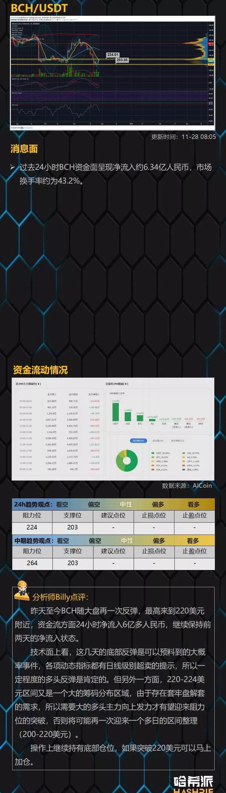 BTC多空持仓比7.6:1 大盘全面走强:大盘全面走强,减半概念强势,BSV3L、BCH3L 24小时涨幅分别为57.75%、40.75%。BCH、BSV多空持仓总量及多空成交总额持续上涨。此外,EOS、DASH受到资金关注,多空成交总额暴增,较昨日分别上涨313%、288%。