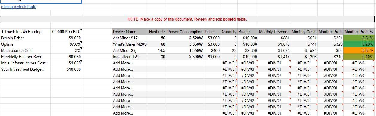 创建你的Excel表格,并考虑所有影响挖矿的因素。比如这样: