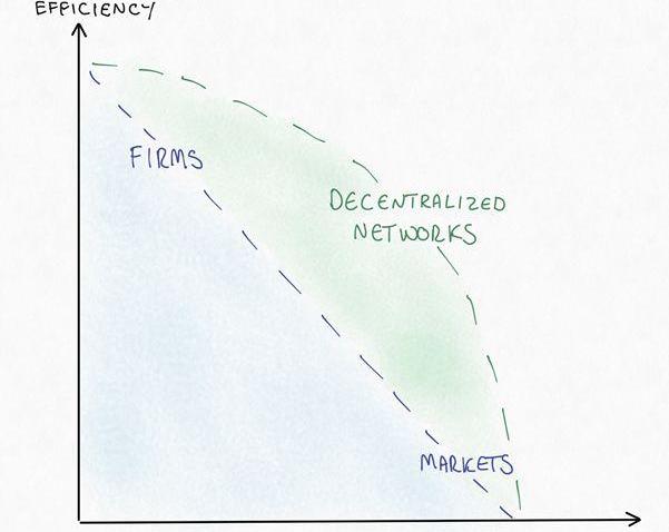 我们同意前述观点,即去中心化网络比市场、中心化平台或企业更具潜力,它能突破最大化和成本效率之间的界限。更重要的是,我们认为去中心化网络能够消除平台寻租现象。