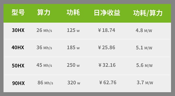 按照CMP HX的规格参数,我们大致可以算出每款卡的收益: