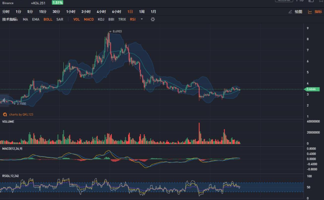 昨日EOS小幅回落后,目前又有所回升,短时表现由弱转强。