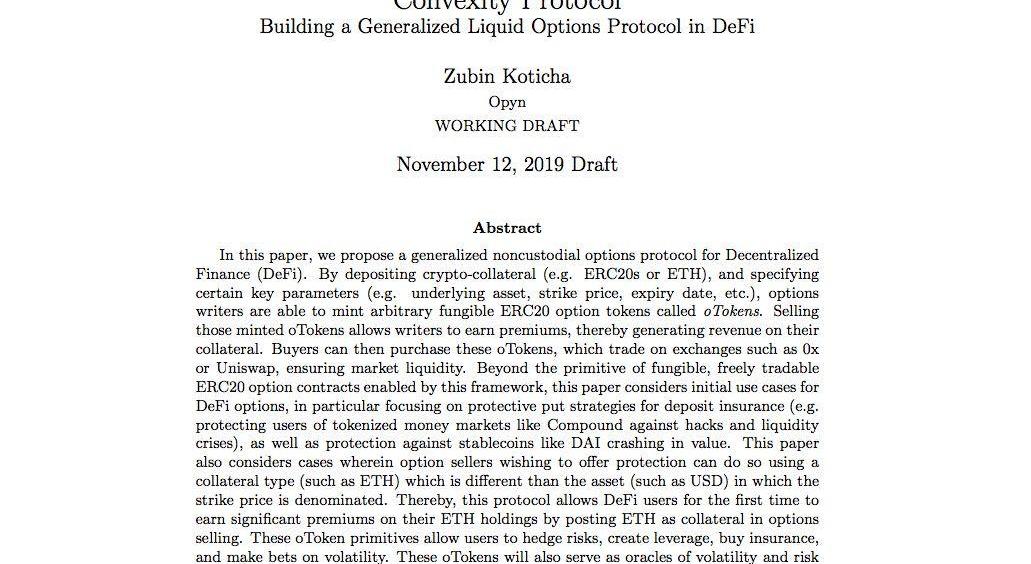 ConvexityProtocol是最近DeFi里新出的一个基于ERC20同质化代币的期权协议,目前还只是一份提议,没有实际产品。在这份提议里,oTokens可以作为一种保险工具,其运作机制更接近于金融衍生品和期权交易。