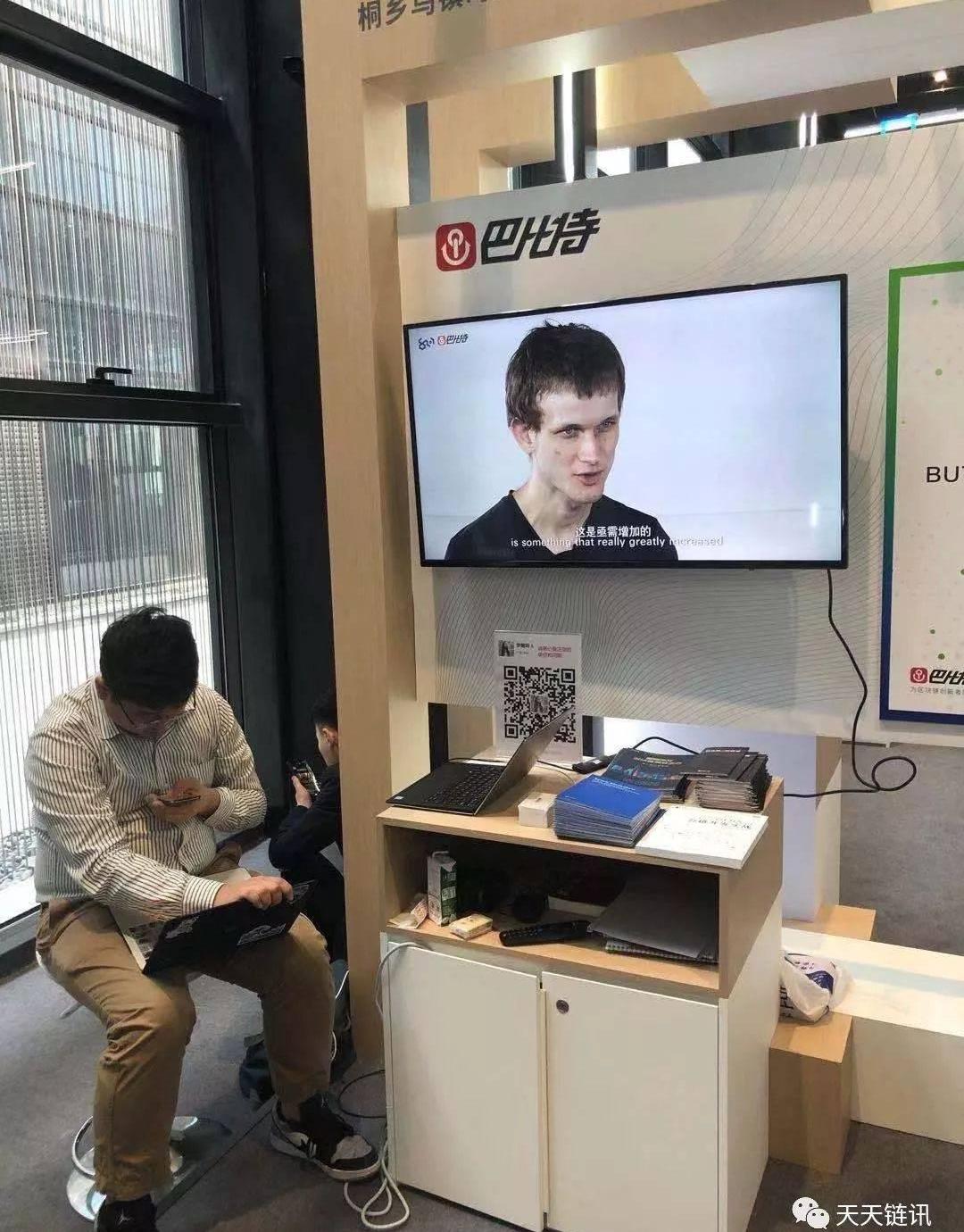 三、巴比特作为浙江当地企业,巴比特肯定不会缺席乌镇峰会。果然,《天天链讯》在桐乡馆找到了巴比特的展台,屏幕上播放着8问主持人贾小别采访V神的视频。