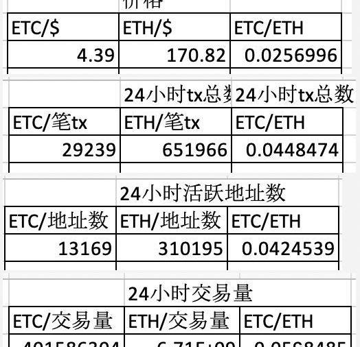 从数据可以观察,ETC和ETH的使用价值之比大约在4.5%,而两者价格之比在2.5%。