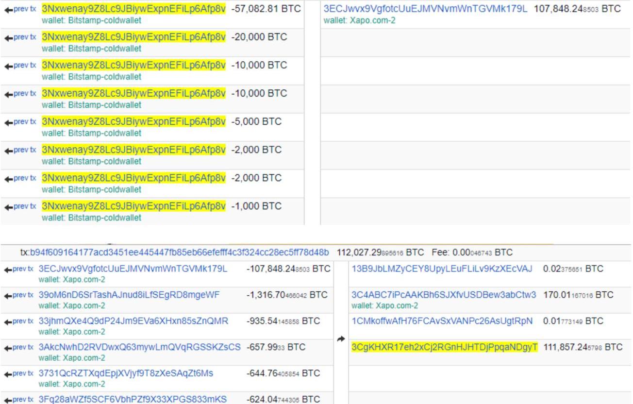 据交易平台Bitstamp10月09日公告:BitGo将为其提供资产托管服务,并为其提供1亿美元的保险保护政策,平台于10日开始向BitGo进行资产转移。可以初步推测,未标记的地址很可能是,与BitGo提供托管服务相关的Bitstamp钱包。而且,有媒体报道,昨日疑似Bitstamp钱包大额ETH互转。另注,Xapo.com为此前Coinbase收购的托管服务商。