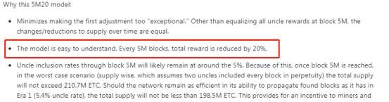 注:ECIP-1017上写道,在ETC这种模型之下,每500万个区块将会减少20%的区块奖励
