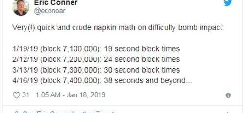 而更值得关注的是,明年三月ETH难度炸弹启动与ETC挖矿奖励减少,两者叠加下将会产生的助推作用。根据ECIP-1017的资料显示,每500万个区块的挖出,ETC网络将会减少20%的区块奖励;而明年三月左右以太坊经典将再次面临减产。
