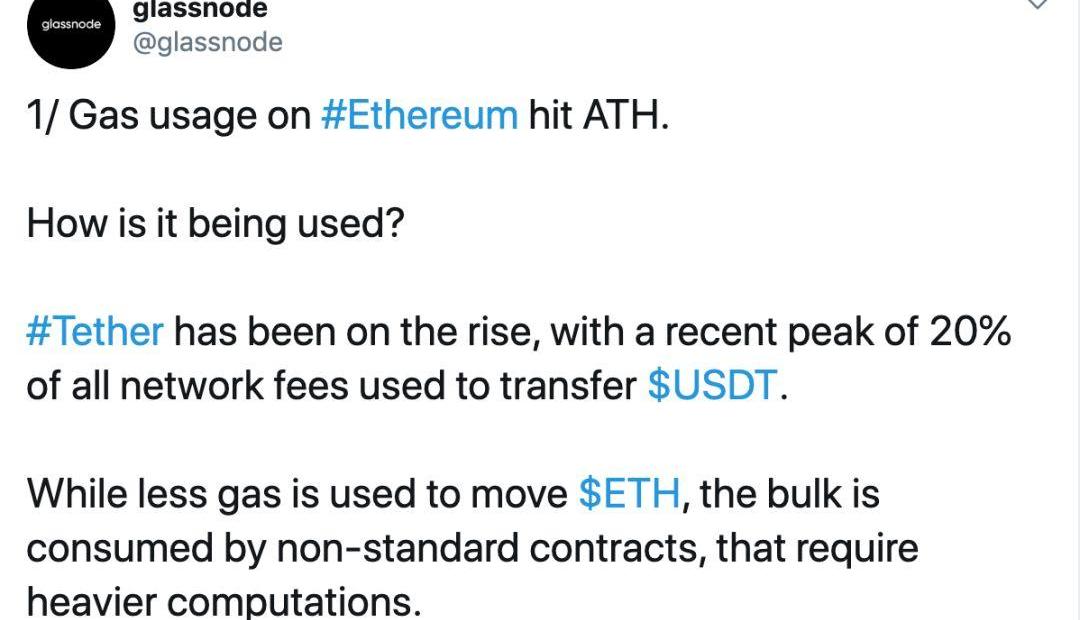 以太坊Gas使用创新高,USDT是最大功臣
