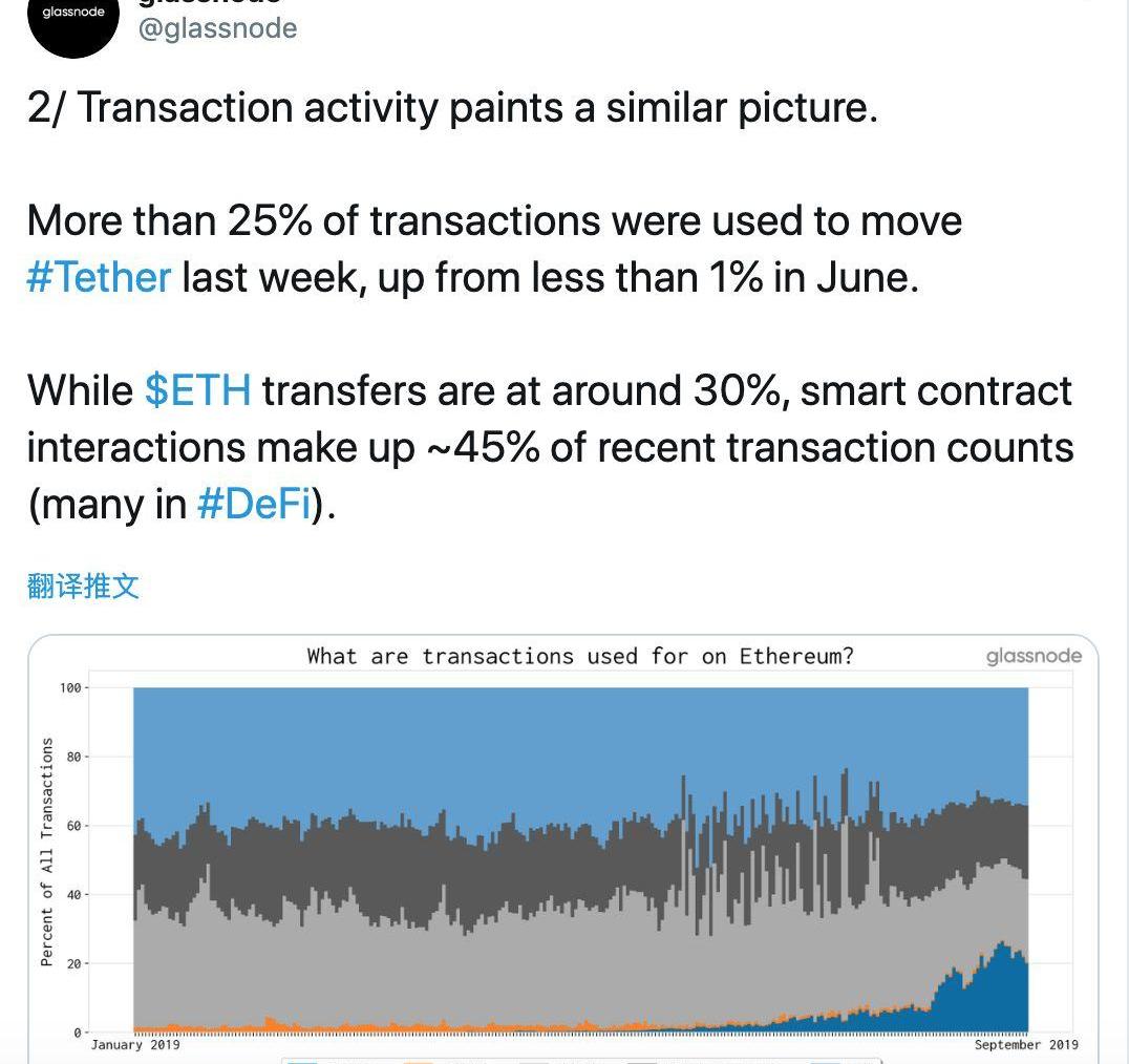 ETH的交易占比大概在30%,智能合约的交互占了最近交易的45%。
