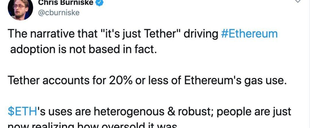 Tether推动以太坊的采用的说法是不符合事实的。