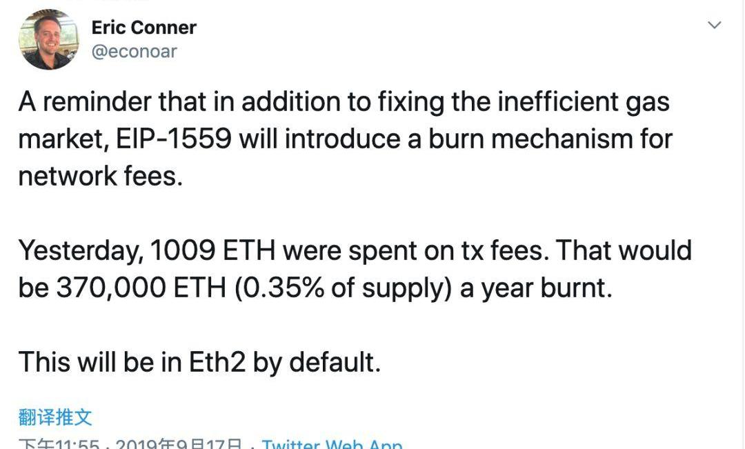 提醒一下,除了修复低效的gas市场,以太坊改进提案EIP-1559将会引入网络手续费销毁机制。