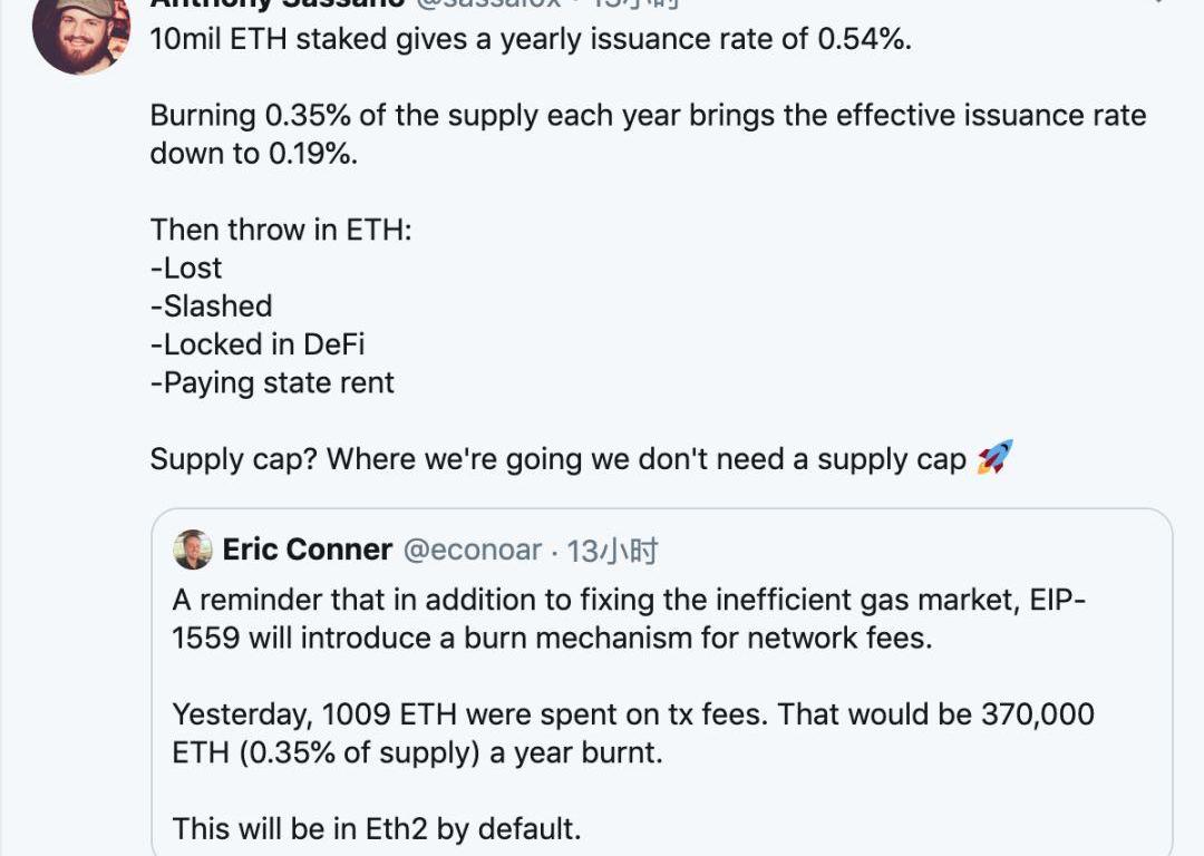 AnthonySassano评论到:“1000万ETH质押使得发行率为0.54%。