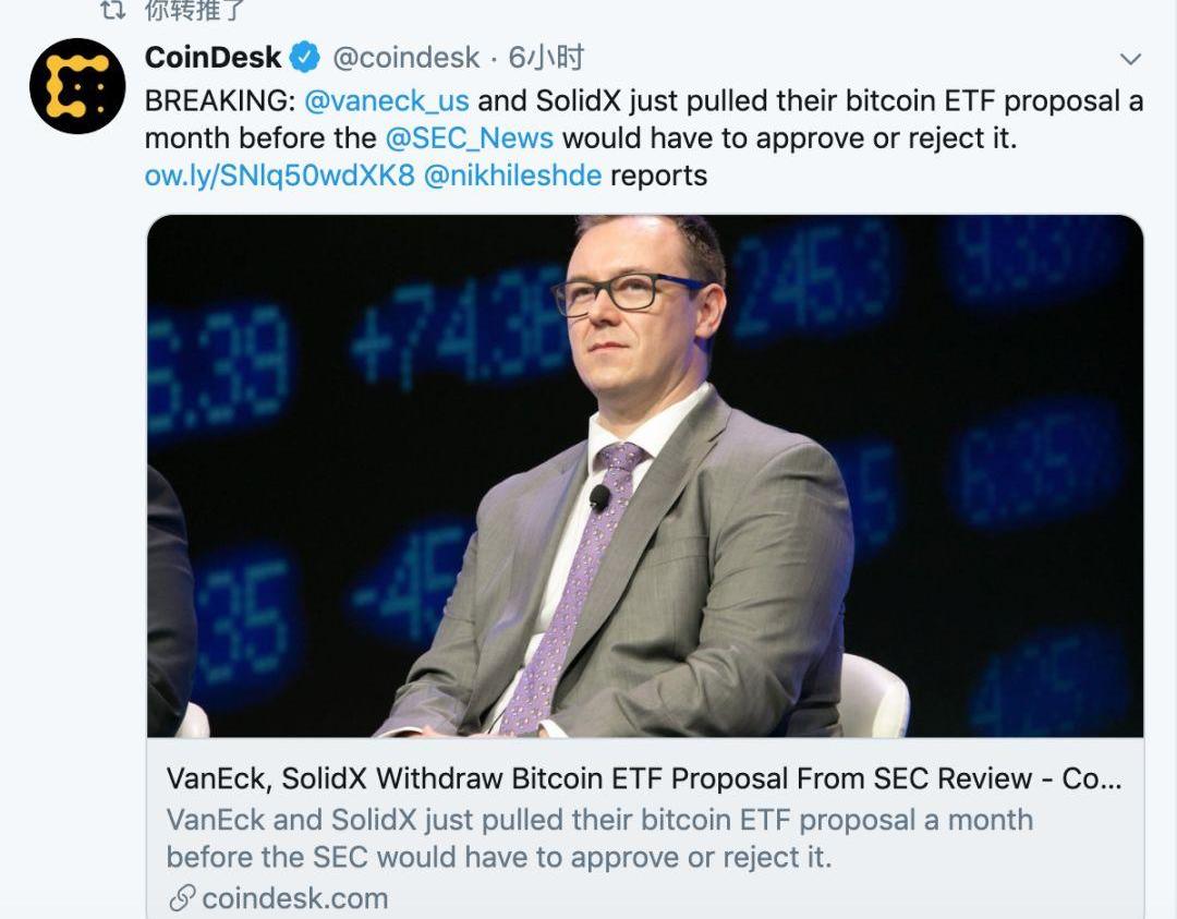 2、据CoinDesk报道,VanEck和SolidX取消了比特币ETF提案。