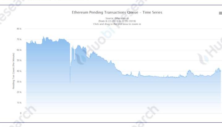 本周比特币平均未确认交易数下降24.76%,以太坊平均未确认交易数上升36.37%。截止8月25日,比特币7天平均未确认交易数为5733,环比下降24.76%。以太坊7天未确认交易数平均为47636.96,环比上升36.37%,其中最低值为28578笔,最高值则达到73109笔。
