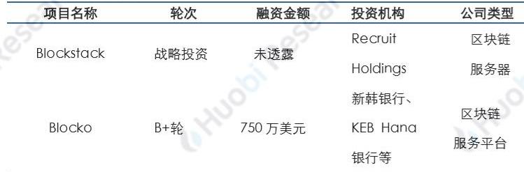 本周共统计2笔区块链行业的投融资项目。融资额最大的是获得新韩银行、KEBHana银行等B+轮投资的Blocko,融资金额达750万美元。